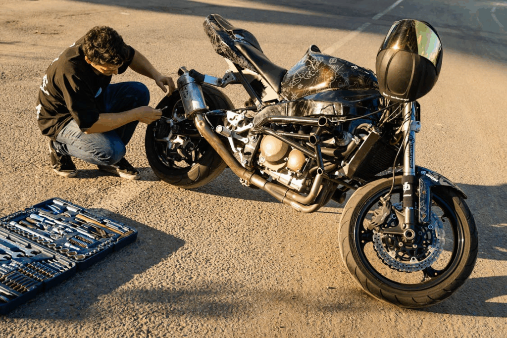 You don’t need a garage full of fancy tools. Here’s what actually matters: a basic socket set, a few screwdrivers, a tire pressure gauge, some clean rags, chain lube, and decent lighting so you can see what you’re doing. Maybe grab some oil if you’re running low. That’s it.